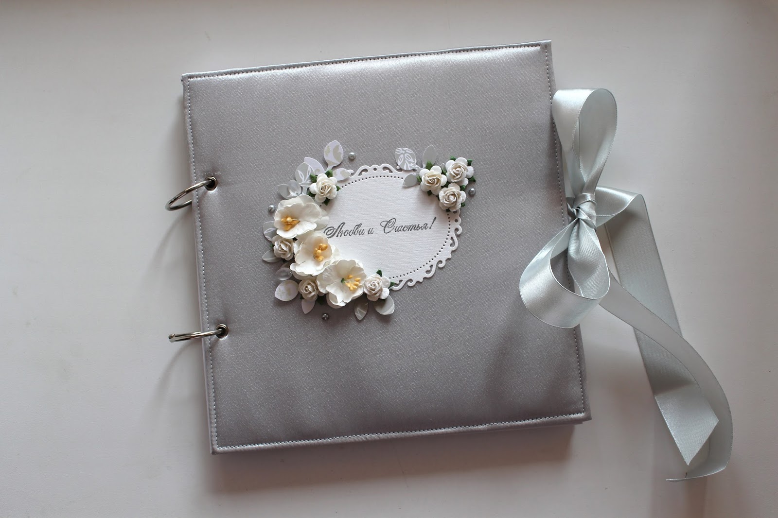 Книга пожеланий, бюджетный вариант, размер 20х20 см, в коробочке. На форзацах место для фото и карман для памятных мелочей.